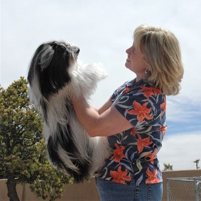 Our vacation in Santa Fe, New Mexico in the Spring of 2006 provided the time to pour through websites, learn bloodlines, and inquire about puppy availability. Although we did not intend to adopt a show dog, my background in breeding horses piqued my interest in Havanese bloodlines. From photos on websites, I determined that I liked Los Perritos-bred Havanese. Thus it was with some joy that I found Triple H Havanese, owned by Ann Hilemn, a Havanese breeder in Tucson, Arizona. Ann had a litter sired by a Los Perritos male with a puppy in my desired color, black and tan. Ann responded to my inquiry, saying that the puppy in which I was interested had already found his forever home, but she had a silver and white male from the same litter available. She assured me that he was the pick of the litter, which proved to be true. However, she would need to meet with us before she would agree that we could adopt this puppy.